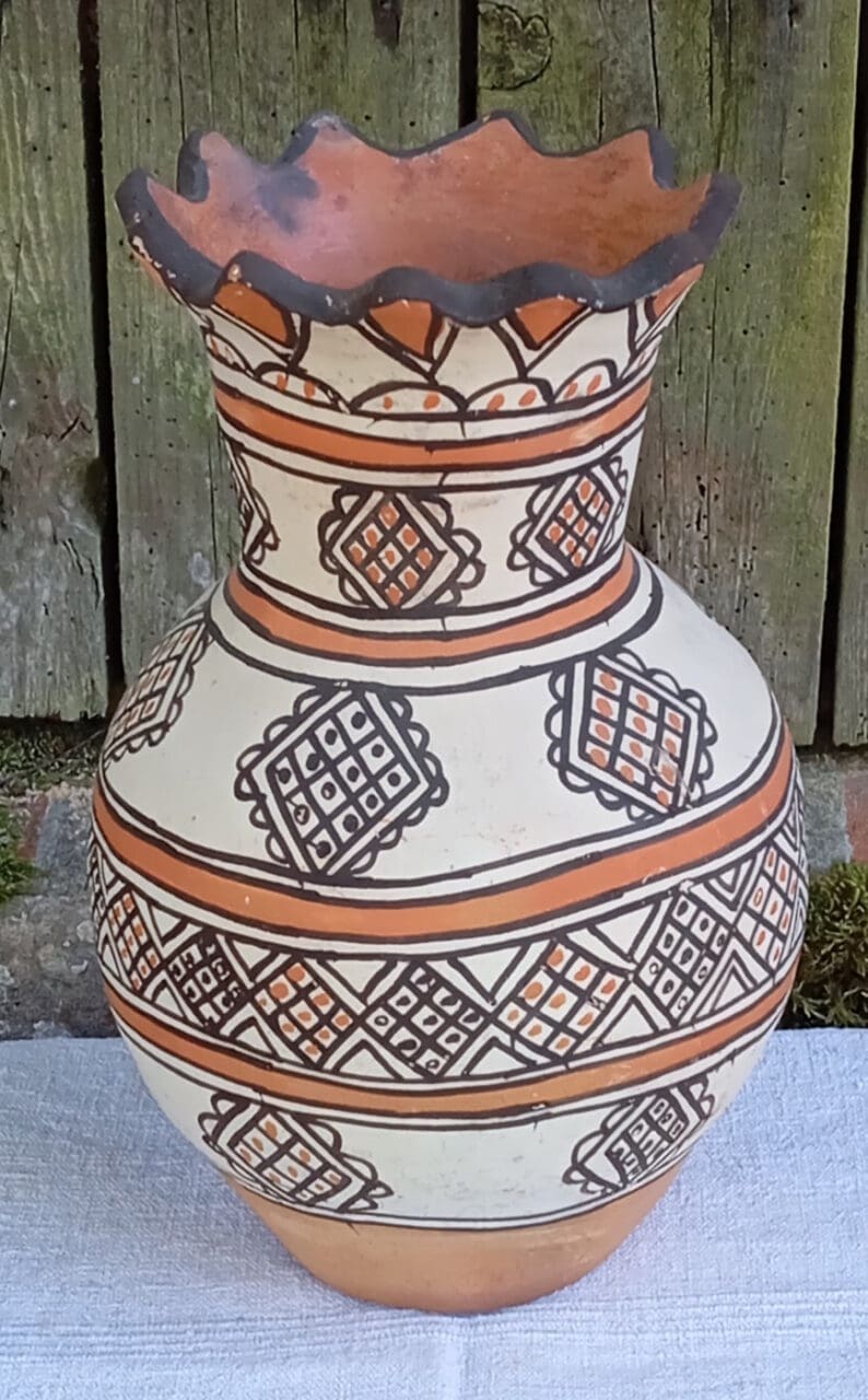 Très élégant vase ethnique au col dentelé.