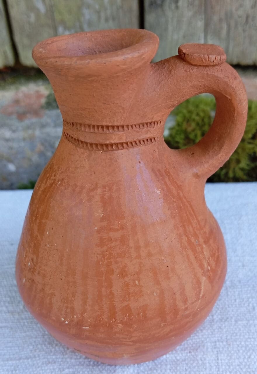 Toute petite amphore à la forme lisse et épurée incisée au col